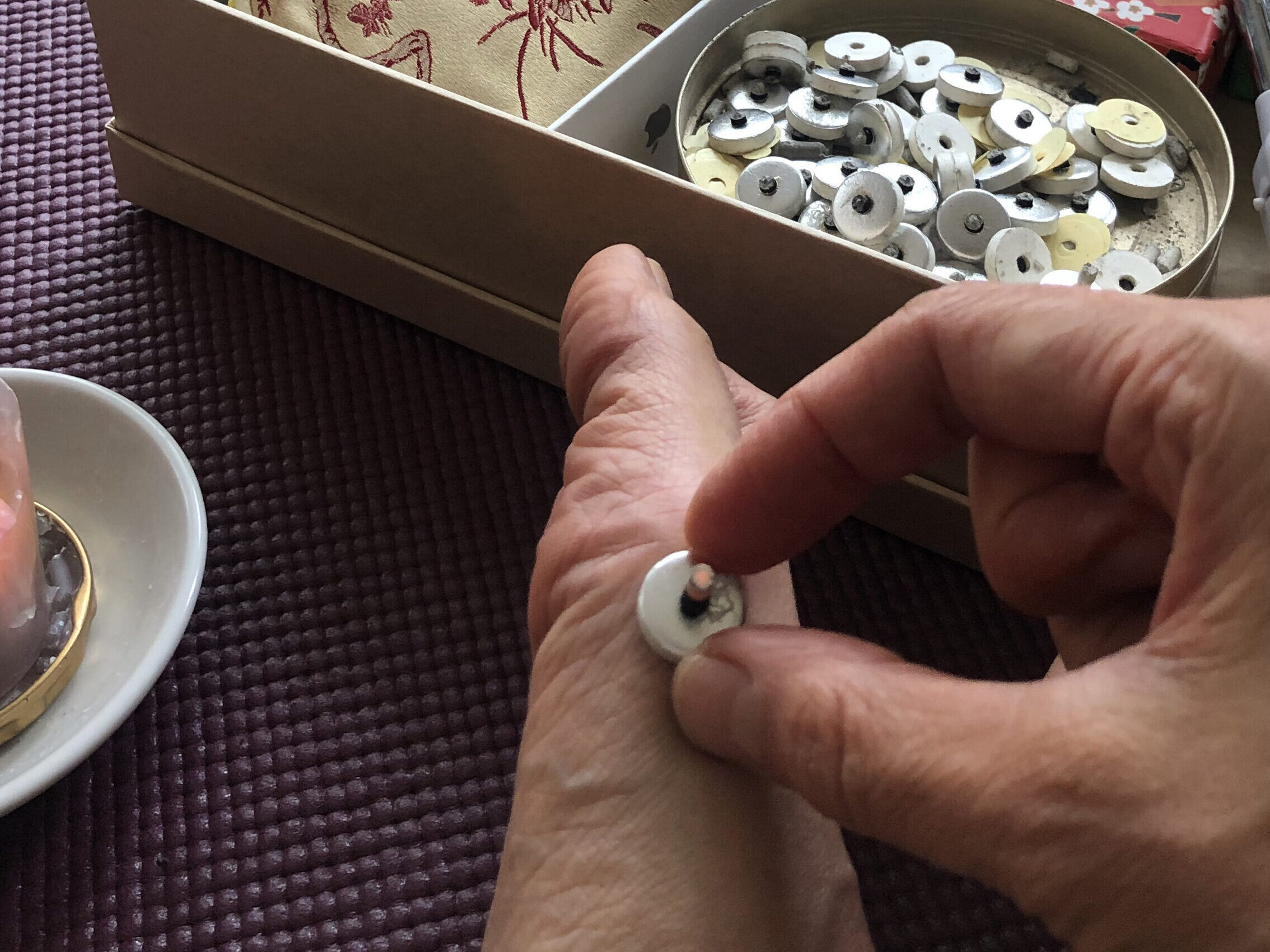お灸グッズを自分の気に入った箱などにまとめる。